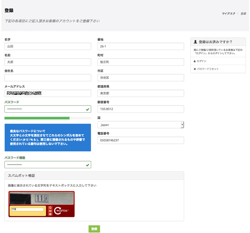 各項目記入欄にご記入頂き、規約をご確認の上同意にチェックし登録ボタンをクリック頂くとユーザー登録が完了致します。