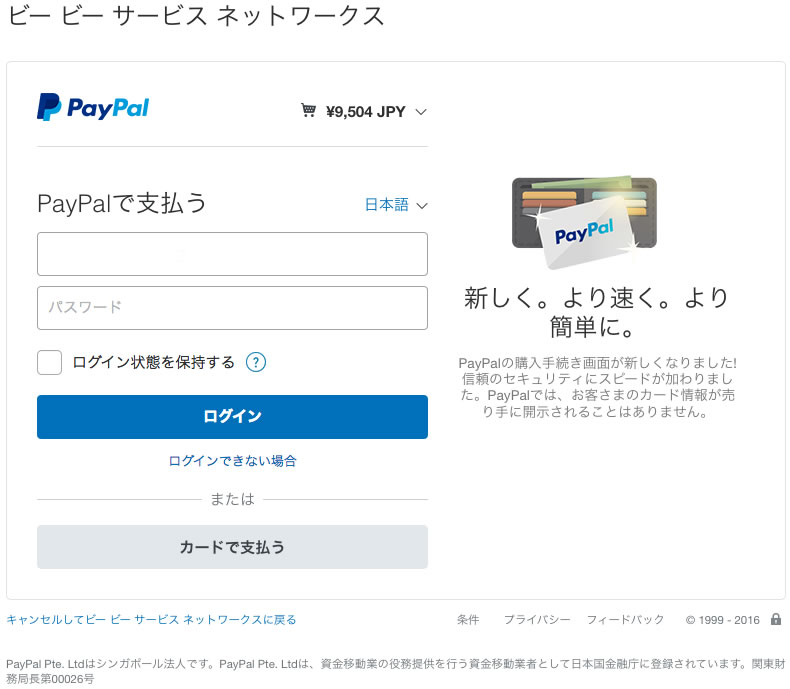 ※PayPal社では順次、非PayPalユーザーのクレジットカード決済に対応しないよう移行しておりますのでお客様の環境によってご利用出来ない場合がございます。